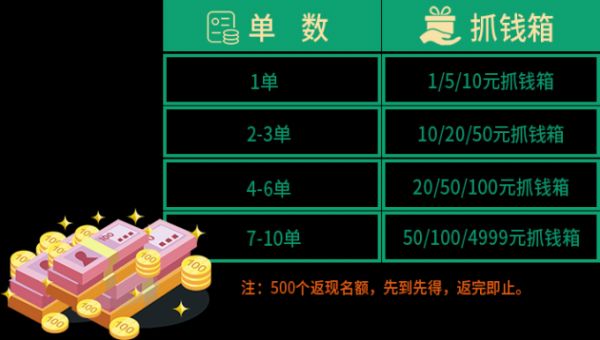 任意门店实付满5000元以上的顾客,凭加盖售后服务章的万家丽购物凭证及付款凭证,即可在8月20日参与全场返现抽奖。不同单数对应不同金额抓钱返现箱,跨品牌越多,抓钱返现金额越高。抓钱时间为5秒,8月20日活动当天下单即可增加3秒。