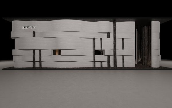 Der·1863这次展馆以弯曲波浪的树木年轮打造外立面,搭配枯枝和洞口,完美呈现了“原始森林”的主体概念,这种别致的外观设计吸引了众多参展者走入Der·1863的展馆,一探森林秘境的魅力。