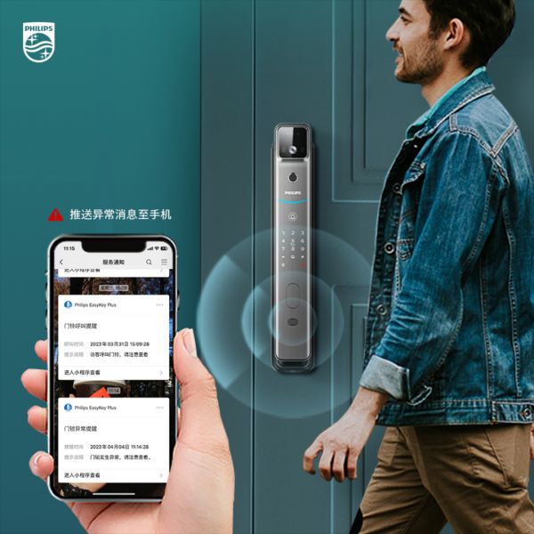 同样,DDL708-FVP等飞利浦智能锁产品还具有防拆、布防、系统锁定等多重报警功能,当发生异常撬动、多次验证失败的情况时,门锁不仅会触发警报,用户手机也能同步收到告警信息。
