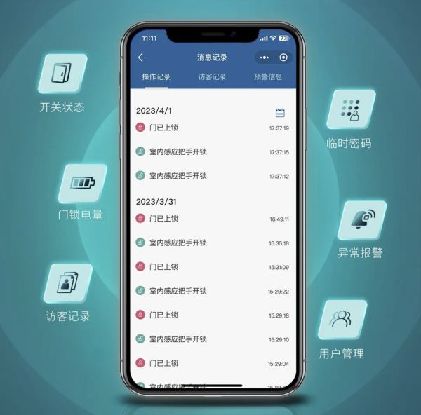 智能手机的普及为用户突破时间、空间限制,对一切尽在掌握提供了极大的便利,可操作性也由此拓展到无线网络覆盖的任何位置。如飞利浦DDL708-FVP支持Wi-Fi联网,用户将智能锁绑定手机后,可通过小程序查看开门记录、剩余电量、异常报警等门锁动态,还能实时查看门外情况。这种“远程超能力”还可以24小时随行,通过内置的4颗低功耗红外补光灯,DDL708-FVP可以根据门外光线环境自动切换白天/夜视模式,无论何时都能“看透”门外景象。