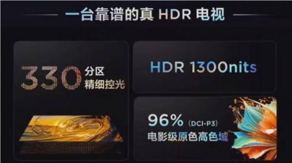 众所周知,HDR全称高动态范围图像,在电视领域的应用核心点考验的是亮度,峰值亮度是HDR电视的准入门槛。峰值亮度不足的情况下,就无法还原真实场景中的亮度和细节,导致亮的地方亮不上去,暗的地方暗不下来,同时暗部细节也会丢失。其次是背光分区数量,分区数越多,控光更精细,光晕更小,能充分展现画面细节。