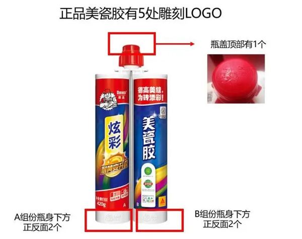 Tips:正品美瓷胶的5个雕刻logo分布在哪?