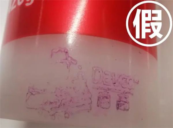 假货LOGO粗糙,多为激光打印,有凹陷及毛刺感