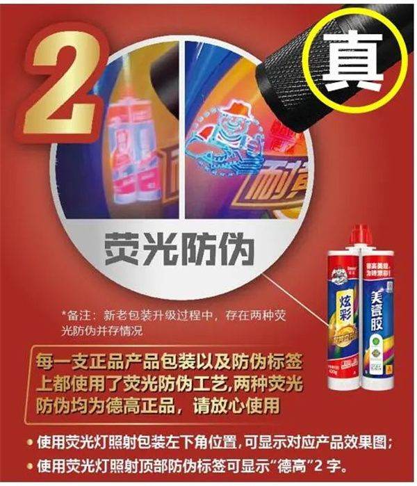购买德高美瓷胶,请认准正规官方渠道,仔细核对商品信息,注意保存购物凭证,对于明显低于市场价格的商品,要提高警惕。一旦发现假货,欢迎扫码参与“亮剑行动”,提报打假线索: