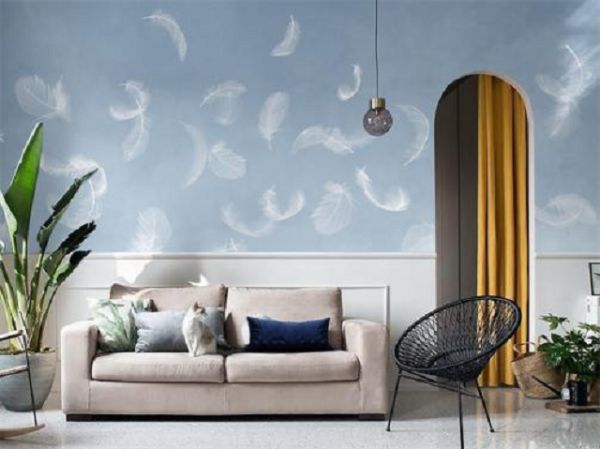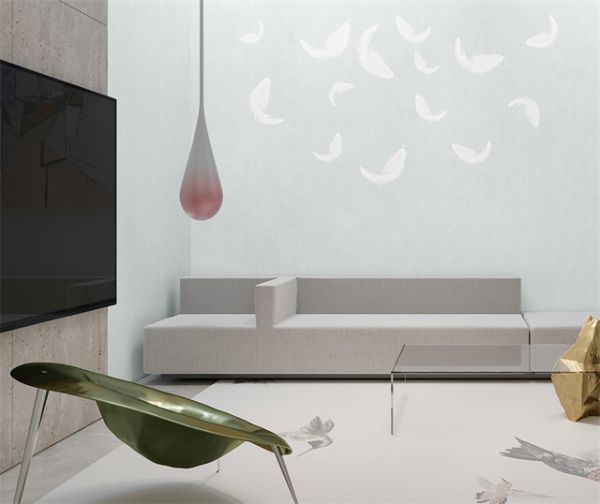 墙布上的羽毛元素能够营造出