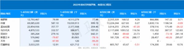 1-6月,对柬埔寨出口39,954,945美元,同比增长133.88%,出口量9,972,944千克,同比增长209.99%;6月份出口额11,519,482美元,同比增长368.85%,环比增长80.65%;出口量3,349,186千克,同比增长636.62%,环比增长93.08%。
