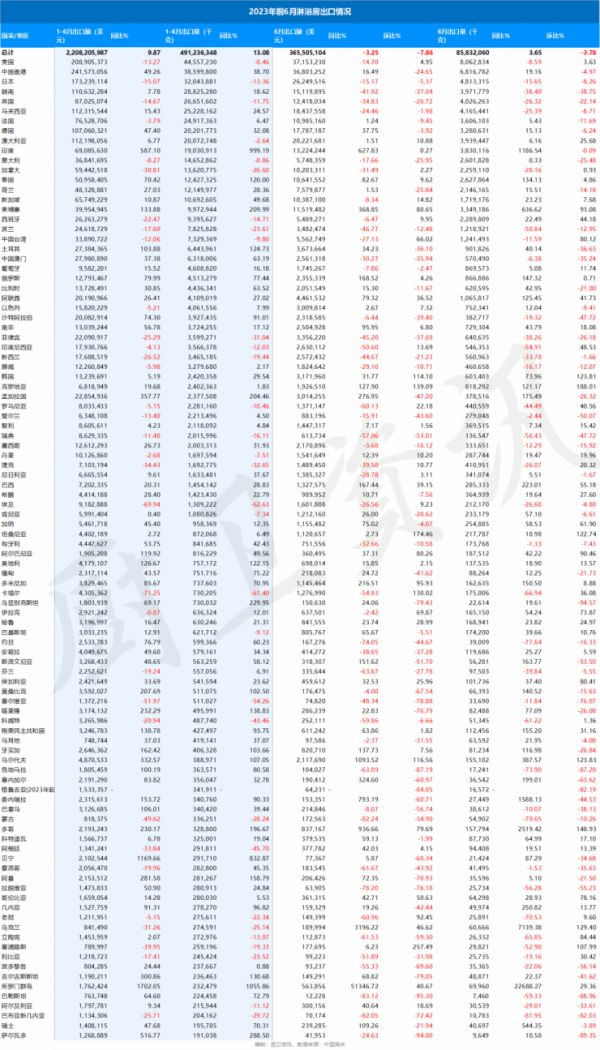 根据中国海关发布的数据,厨卫资讯统计分析:1-6月,淋浴房出口金额2208205987美元,同比增长9.87%;出口量491236348千克,同比增长13.08%。