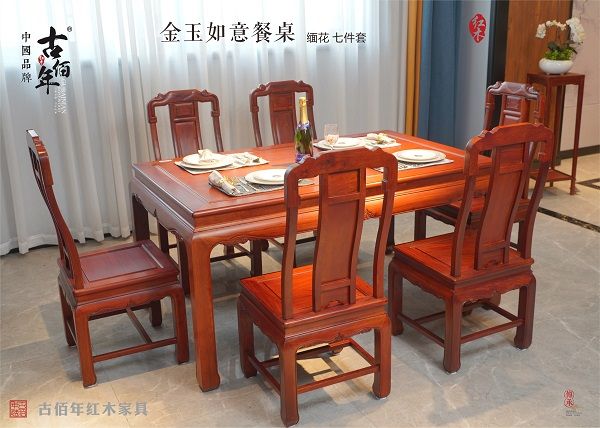 金玉如意系列不惑之年体验时光如梭,花甲古稀則犹如白驹过隙………繁华落尽后的本真尽赏”金玉如意” 树木自扎根于土,历世间风雨沧桑,将冷暖痕迹亦皆内刻于自身,忠实记录日月寒暑,即使被锻造成材,也需因地制宜,以木量材。木头是有生命的,以木而量材。木头是有生命的,以木而制之家具更是性情。家具自置入空间,与主人朝夕相处之时,便会与家构建成一种相依相靠的情愫,她们会从熟悉家开始,熟悉爱,熟悉包容,熟悉支持,熟悉触与抚的温润。作为家庭的重要组成,它坚定而温和,也许你曾经不以为意,从未思量它的默默付出,从今天开始,不妨再贴近感受一下,是否明白它的无声言语,它的淡雅美好。缅甸花梨木温润的色泽,无论是椅脚或桌脚的长方扁材在端部皆圆雕如意的造型,且较为生硬的方状加注了流线的造型美感,其更蕴含了中国人质朴柔顺与谦和观念。