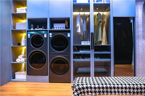 在护理柜、洗干护集成机和洗干组合下,组成了穿搭奢护精智方案;