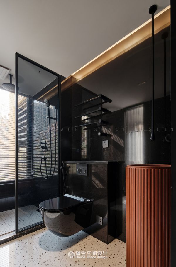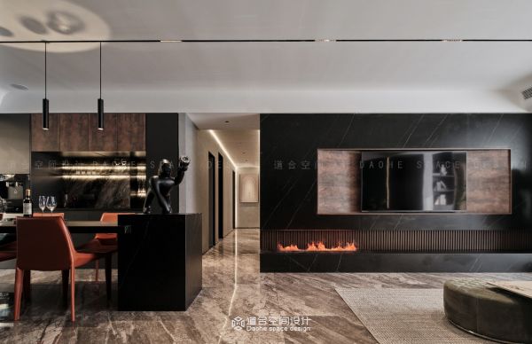 在这个设计中,黑色是一种态度,黑色拥有谦虚与傲慢两种特质,黑色是慵懒随性却神秘莫测的。本案用黑色传递生活态度,行色匆匆是外面世界的节奏,在这深色空间内 把时间和空间都留给了自己,获得从空间到心间的安静。