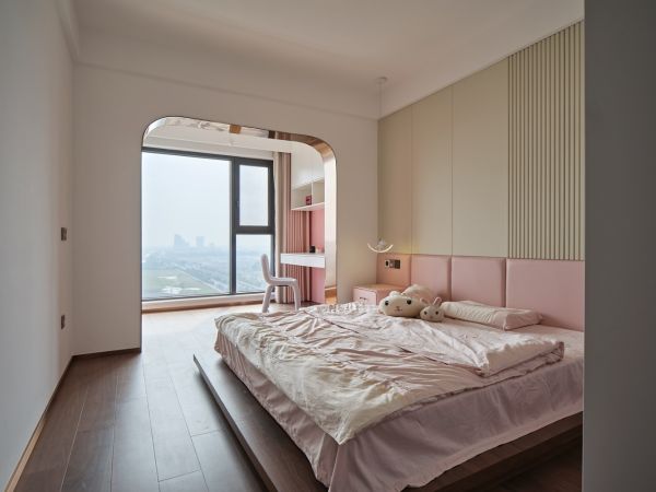 考虑到业主一家下班回到家基本都是晚上了,这样既可以直观的感受到家里温暖,又可以看到开灯营造出来的氛围,并且我们在材料的选择上,也偏向于深色系居多,整个空间材质也会更好地体现;防盗门外开,鞋柜衣柜放在外面,不占用室内空间;U字形厨房两面做三联动吊柜移门,这样缓解进门压抑,扩大了人的视野,冰箱放餐边柜内,做嵌入式;客餐厅做竖厅,电视背景采用木饰面,格栅和黑色涂料结合,100寸电视融为一体,阳台中间面向客厅墙面做肌理涂料,楼梯踏步加宽,每层踏步做灯带, 和卫生间拐角墙面造景,后期可以摆放绿植或雕塑;卫生间做隐形门设计,这样外面更像一个整体;二楼主卧和女儿房都采用的地台加灯带设计,使整个空间更加有层次,主卧背景格栅、肌理涂料加艺术漆,精细的测算尺寸,划分三者面积, 让整个空间更加具有设计感,无论是落地床头柜还是悬空,高高低低,不在单一,灯光设计不仅保证了家里主要照度,添加的氛围灯使整个空间更加立体;女儿房主要是明亮富有童趣为主,波浪板加软包设计,让孩子睡的更加舒适,弧形门套,造型门板设计保留孩子天真;三楼留个房间,给老人偶尔居住,楼上主要用来娱乐兼家政。