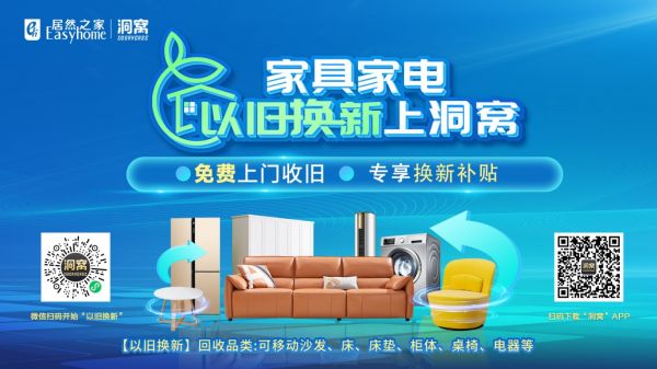 本次司庆焕新消费季将继续以“家具家电以旧换新”服务为主打IP之一,提供免费上门收旧,专享换新补贴等服务,消费者可通过“洞窝”平台参加“以旧换新”活动,最高可领取500元消费券,消费者购新后居然之家提供免费上门旧物回收服务。