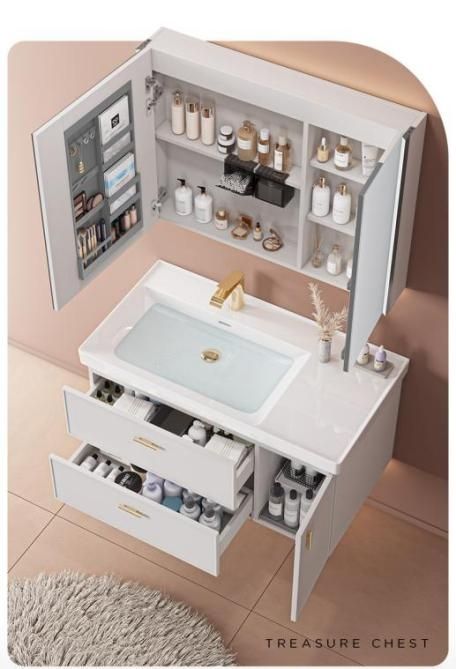 不仅如此,智能技术也在不断融入革新的产品之中,让人们享受到科技进步的福利。浴室柜A2727加入了智能感应灯技术,当人们在台下挥手时,灯光会自动打开和关闭。不仅方便了夜间使用,还能搭配美妆区进行浴室梳妆,以弥补浴室光线不足的缺陷。这一设计不仅提升了用户的体验,还增添了科技感和时尚感。