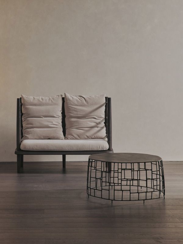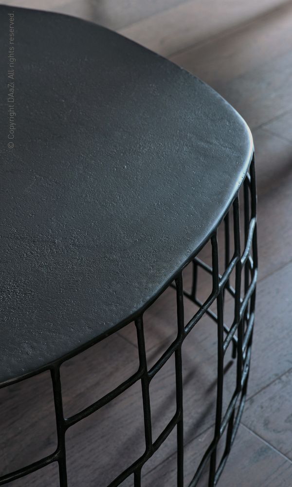 L8305茶几是一款铸铝茶几,以铝为材料,通过翻砂工艺去呈现,再通过手工擦色打磨,使铝表面呈现出一种带有陈旧感的底色。茶几的面板并非规整的几何形状,而是一种随机的状态。茶几侧面则是由铝匠逐根焊接而成的不规则网状结构,这种通透的结构不仅减轻了茶几的体量感,还增加了茶几造型的艺术属性。