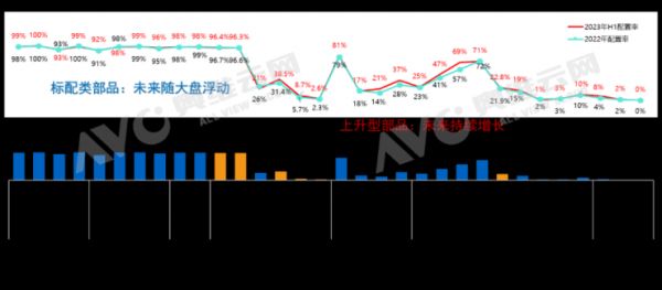 从部品来看,建材部品、卫浴部品、厨房部品多为标配类产品,市场份额接近百分之百,2023年上半年配置率基本保持不变。舒适类、智能类为增值类部品,配置率持续提升。从品类来看,消毒柜、电热产品持续下滑,逐步被洗碗机、壁挂炉、燃气热水器、空气能等产品所代替。