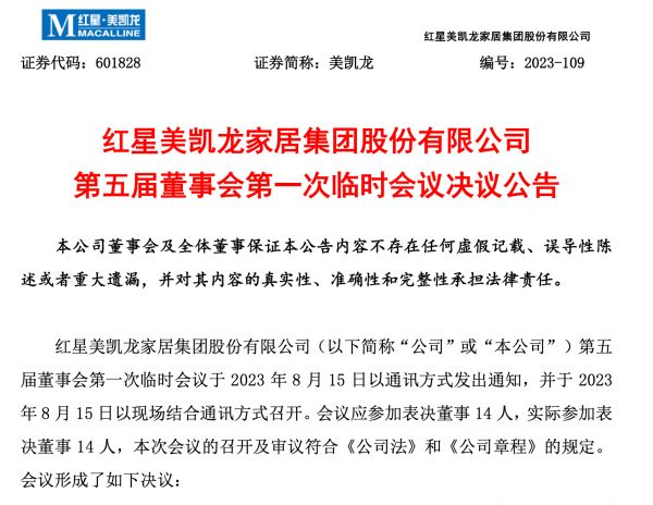 据8月16日红星美凯龙家居集团股份有限公司(601828以下简称:红星美凯龙或公司)披露的《第五届董事会第一次临时会议决议公告》《2023年第三次临时股东大会决议公告》《红星美凯龙家居集团股份有限公司关于董事会、监事会完成换届选举及聘任高级管理人员、证券事务代表的公告》等消息显示: