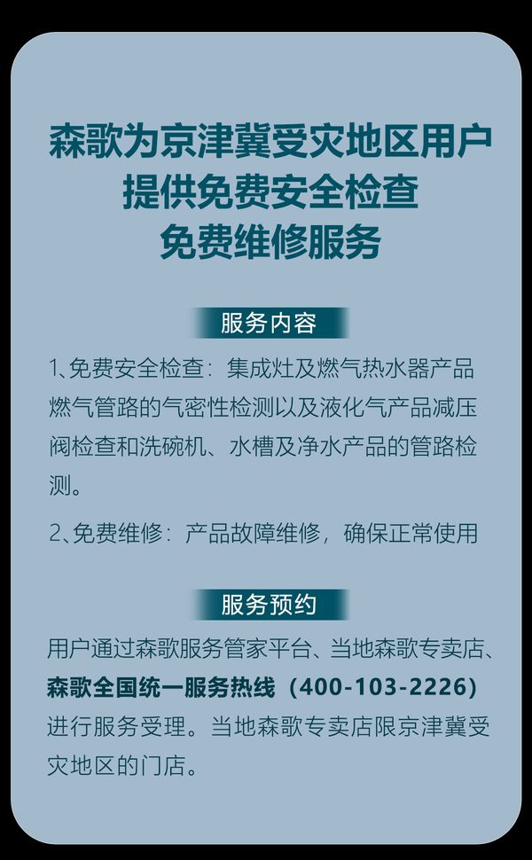 业内首家!森歌率先启动无偿检修服务,为受灾用户倾力护航!