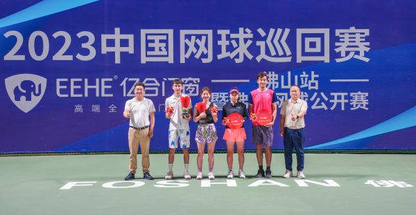 8月11日,2023中国网球巡回赛·佛山站暨“亿合门窗”佛山网球公开赛正式拉开帷幕。8月12日-8月13日,正在鏖战的网球健儿经过两天的激烈角逐,最终,5个单项的冠军顺利诞生。8月13日当天下午,赛事颁奖仪式在佛山世纪莲体育中心圆满举办。获得本次比赛女单冠军的是夏锦舒,男单冠军的是于宗丙,女双冠军的是唐好辰、邓雅琪,男双冠军的是方靖杰、陈钰迅,混双冠军的是苏晋亿、王宇泽。