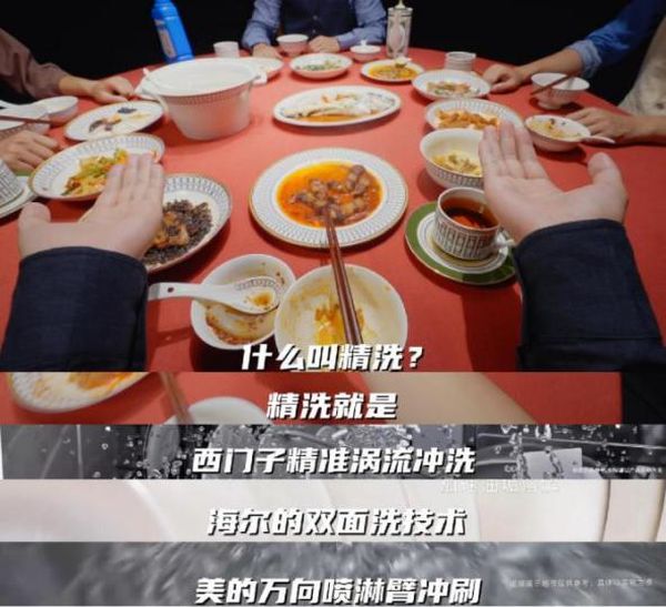 “精洗就是西门子精准涡流冲洗、海尔的双面洗技术、美的万向喷淋臂冲刷......”