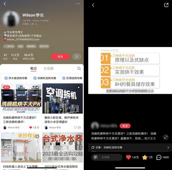所以,在当前的社媒传播中,用户也显现出了对于产品技术、原理知识等深层次、带有辩证向的关于家用电器产品设备专业论述的注重,而同时,专注于家居家电相关领域,有着相当丰富的知识背景的博主/品牌方越来越受到欢迎。