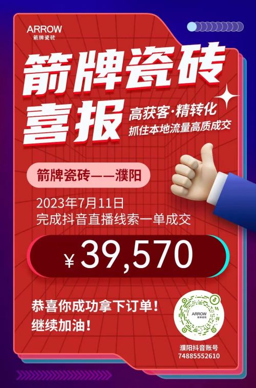 破局数字化营销时代,箭牌瓷砖与经销商携手打造一批批优秀的直播团队,在新赛道的不断探索下,抖音特训营项目第二阶段开播总留资增长率达967%!