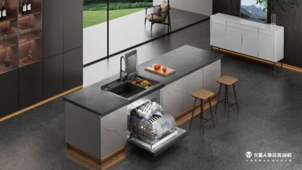 2018年在集成化浪潮下,集水槽、洗碗机、消毒柜、残渣处理器、橱柜五大功能于一体的火星人D7横空出世,被视为开创集成洗碗机品类的标杆之作。