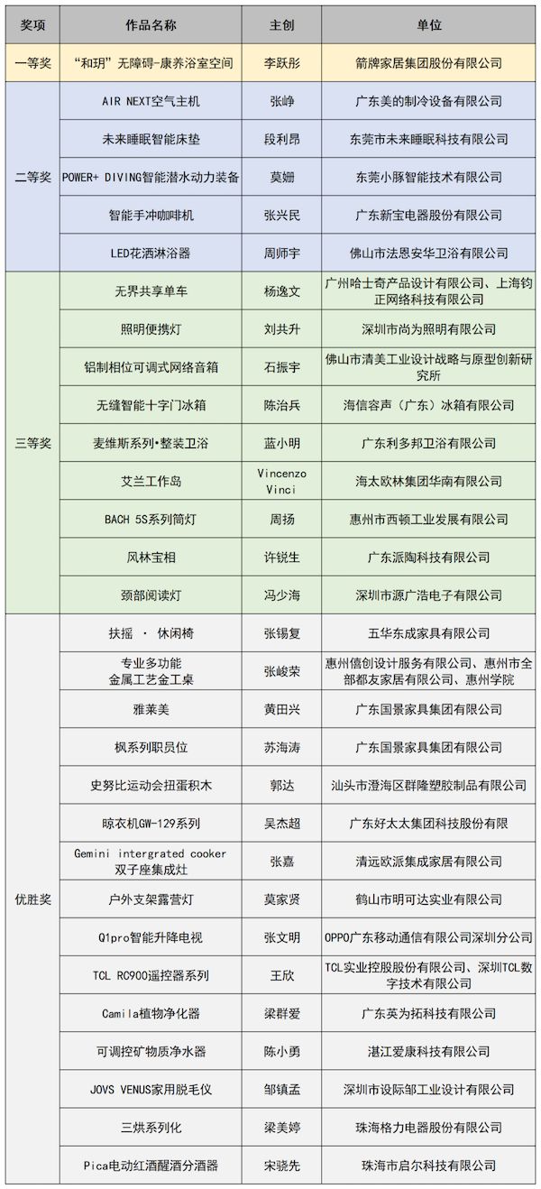 附:《第十一届“省长杯”工业设计大赛泛家居专项赛获奖名单》