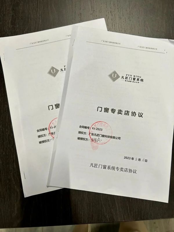 他说,在与凡匠门窗接触的这些年来,对凡匠门窗的经营文化理念非常认同,对其产品质量、销售模式、售后服务、加盟商扶持政策等方面也很满意。同时,他对凡匠门窗未来的发展更是充满了信心,决定与凡匠门窗合作,并正式签订了加盟协议。