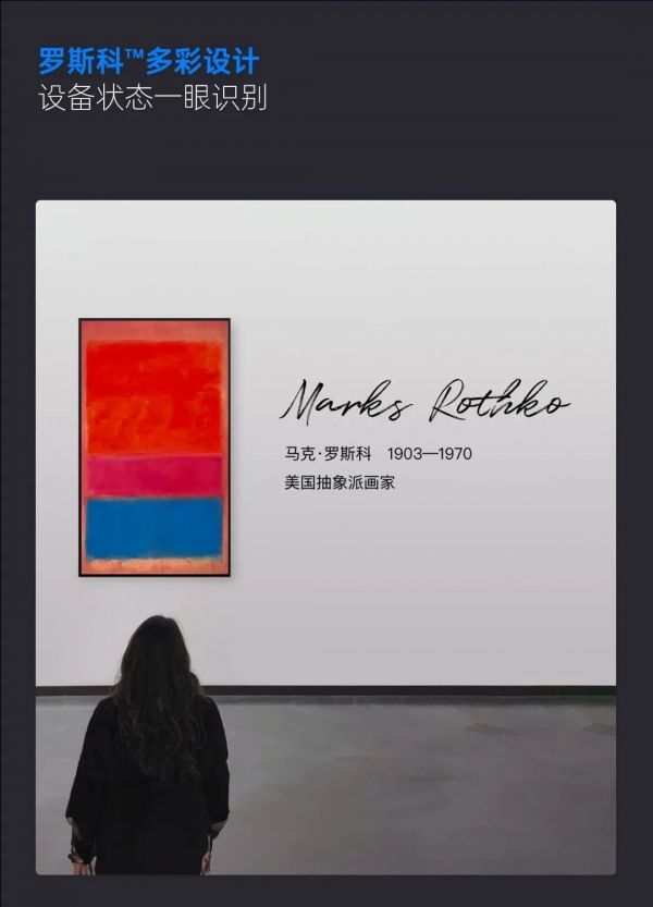 l 罗斯科™多彩设计,克制的使用饱和色,沿袭了实用和精神性平衡的设计理念,让用户可一眼识别设备的运行状态与区位环境指示。