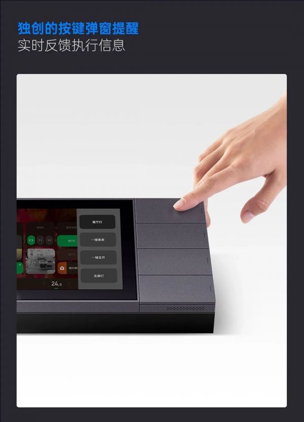 l 业内首创的实体按键执行弹窗提醒,不论是设备控制、场景执行,都能及时把执行信息反馈给用户。