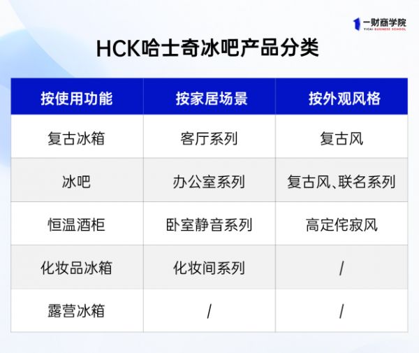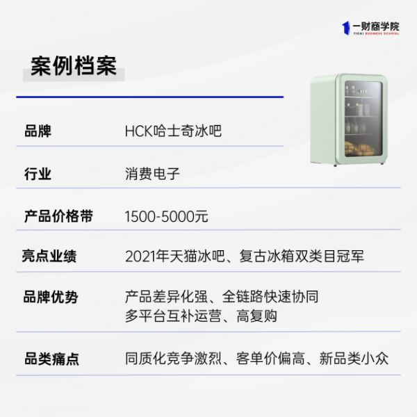 2013年,试水中国家用终端零售市场,彼时国内主流冰箱类目仍以满足基本需求为主。2020年,消费市场对冰箱的细分需求不断涌现,不同于传统意义上厨房餐厅里的大体积冰箱,HCK哈士奇冰吧主打“小而美”的差异化定位。推出复古冰箱、美妆冰箱、露营冰箱、冰吧等产品,拓展冰箱的使用场景和产品类目,从而开创新的细分赛道,并成为冰吧新品类头部玩家。