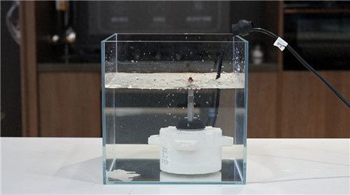 接下来的泡水测试验证的则是电机的耐水、耐油性能,只见测试人员将电机泡在水中,电机仍能正常运转,这是因为卡萨帝油烟机采用的是直驱变频电机,独特的密封结构,耐水又耐油。