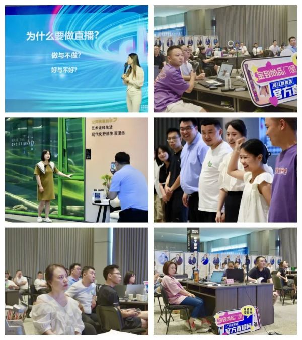 经销商伙伴们现场频频举手,表现了对开播的极大热情,并利用总部现有的展厅作为实验基地,反复挖掘巩固直播要领。