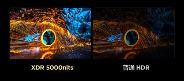 除了在背光分区上做到了极致,这次峰值亮度也同样达到了行业最高的XDR 5000nits,由于在生活中,我们看到的大自然光和室内灯光照在光滑物品表面上的光亮度差不多在5000nits的样子,因此如果想要在画面呈现时亮度不被压缩,并且让细节都能栩栩如生的呈现,就需要达到同样的5000nits。