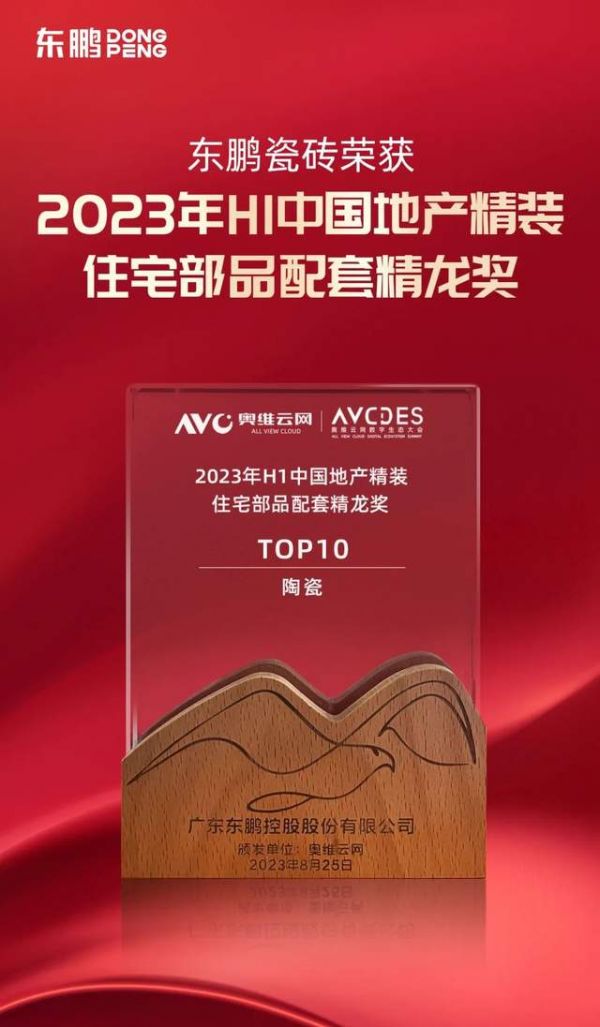 △东鹏瓷砖荣获2023年H1