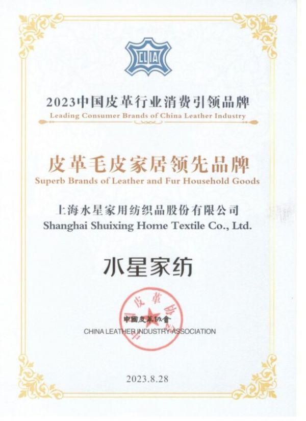 8月28日,由中国皮革协会举办的“2023中国皮革行业消费引领品牌发布盛典暨第十四届皮业论坛”在上海隆重举行,大会现场揭晓了“2023中国皮革行业消费引领品牌”榜单,水星家纺强势入选,荣获“皮革毛皮家居领先品牌”称号。