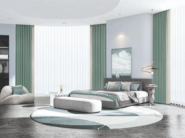 美绮窗帘《焕彩 Glow》汲取山峰之绿,壮阔的山峰景色便随之展现在墙面之上。大面积的青绿色让人犹如置身在森林山川之间,舒畅清爽,其间点缀的奶白色让空间显得更加干净,高精密提花面料光泽感满满,随着光影闪过的珠光凸显,时尚又不失稳重。身处其间,观者便犹如诗人一般面对群山,感受到自然空间中流淌的壮阔诗意。