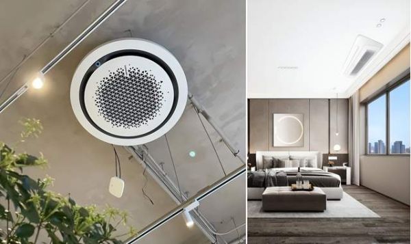 SAMSUNG WindFree沐风嵌入式单向气流产品135mm超薄机身,避免吊顶过厚给装修设计带来压抑感,微孔送风设计减少冷风直吹增加居家舒适感,三星360嵌入式产品圆形外观时尚典雅,成为家装设计的点睛之笔。