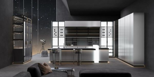 汲取宇宙自然元素,高级的黑白灰色调与金属现代元素相结合演绎宁静神秘的空间,与宇宙的静谧平行;从绚丽星云里提炼色彩,幻彩灯带显露太空的恒美;飞船形状的吧台区,带着探索宇宙的奇思妙想着陆;植物生态呼吸能量舱,深度挖掘生命的含义。整个系列融合原始自然风与未来科技感,打造出年轻一代用户喜欢的高科技、酷感、探索神秘宇宙的厨房科技美学氛围感。