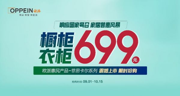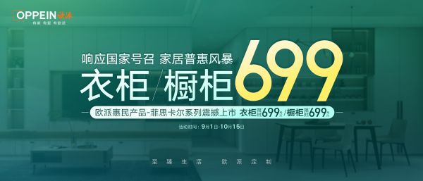 作为中国定制家居领军品牌,欧派秉承高度社会责任感,积极响应国家促进家居消费的号召,在金九银十的家居消费旺季,大幅让利消费者,重磅推出惠民产品:菲思卡尔系列衣柜/橱柜699元/㎡(m),限时钜惠,于9月1日至10月15日开启家居惠民风暴,助力更多国人实现“有家有爱有欧派”的美好人居生活。