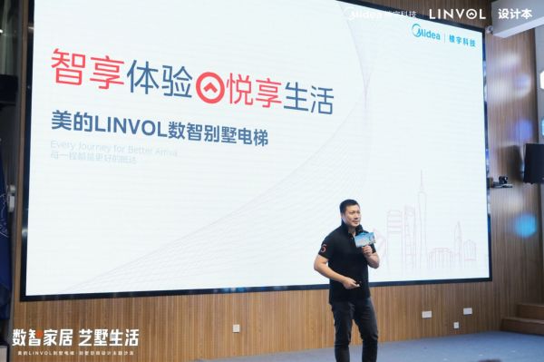 活动开始,美的楼宇科技 电梯销售北方大区总监梁家彬带来了《智享体验 悦享生活》的分享。他讲述了美的LINVOL品牌的发展历程,智能、安全、舒适、空间、美观等五大维度在家居设计中缺一不可。