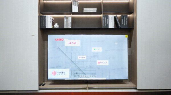 电动巴士门设计,只需轻触无线遥控器,在隐藏电视机之余,还能有效防止灰尘堆积,重新塑造客厅的空间收纳能力。