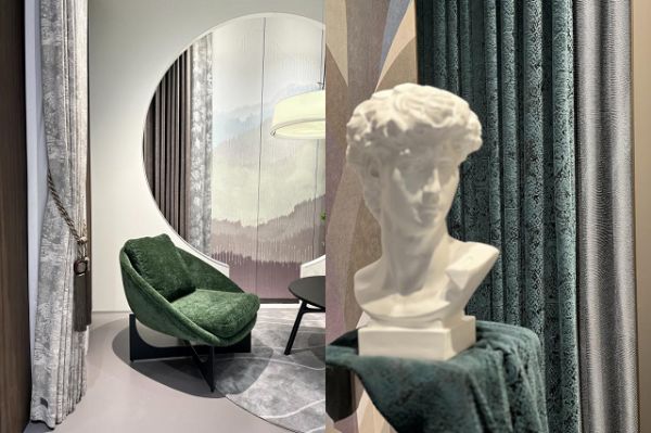 雅琪诺立面软装拥有窗帘、墙布等丰富的多品类软装产品,采用时尚精致的产品设计以及新型前沿的生产工艺,锻造高质量、多功能的软装产品,能够满足市场多重软装需求,为消费者打造精致美好、健康舒适的家居生活空间。在雅琪诺为迎接杭州亚运会布置的展厅内部,各种品类、风格的精美产品依次整齐摆放,同时以场景化的方式进行成套软装产品展示,为消费者省去了搭配的烦恼,充分调动消费者的各个感官,营造沉浸式消费体验,让消费者体验到家的精致与美好。