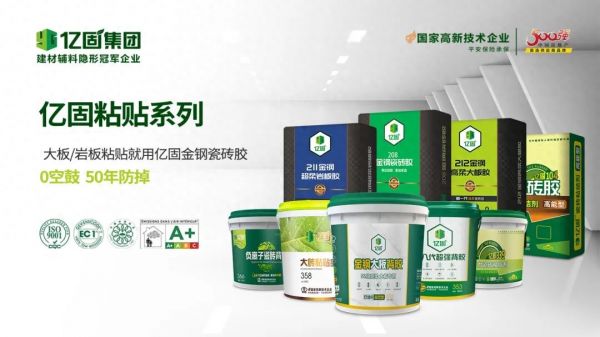 亿固瓷砖胶系列产品解决了瓷砖胶在铺贴低吸水率的大板、岩板等大型饰面材料强度低等关键技术难点,突破纯粹依靠配方修改来改善砂浆强度和施工性的局限,为行业提供了生产特种高强瓷砖胶的新工艺。
