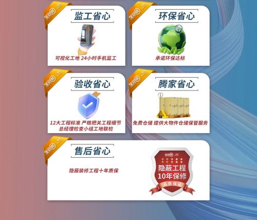 腾家省心:免费仓储,提供大件仓储保管服务,让业主不再为装修腾物发愁。