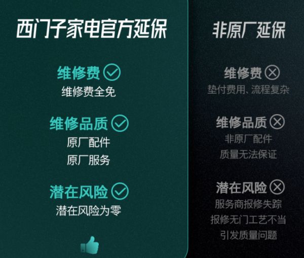不局限于洗碗机单个品类,西门子家电的售后服务已具备体系化特征,应用于全系产品,并不定期为用户提供服务优惠活动。就在近期,其适时推出“双原保”延保服务,由西门子家电官方提供技术团队服务支持和专业配件品质保证,让用户在三包期满后,享受更长时间的售后保修服务。对比市面上常见的非原厂延保,西门子家电的官方延保让用户免于复杂流程,同时确保原厂专业维修品质,有效瓦解非原厂服务因配件质量不佳或人员工艺不当对产品产生次生伤害。