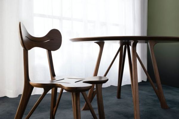 Stay系列餐桌的圆形顶部由四个无缝连接的木片制成,具有精致的边缘斜角设计。餐桌呼应树枝的形状,由分支成两条的桌腿支撑以确保整个餐桌的稳定性。同时,Stay系列座椅同样独具特色;四叶草形状的座椅,其仿自然形态的结构展现了自然之美。该系列采用手工工艺精心制成,展示了木材作为天然材料的多功能性。