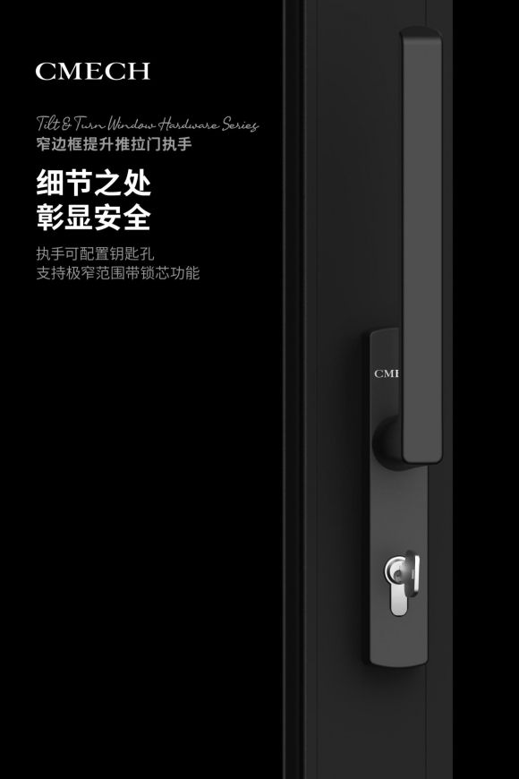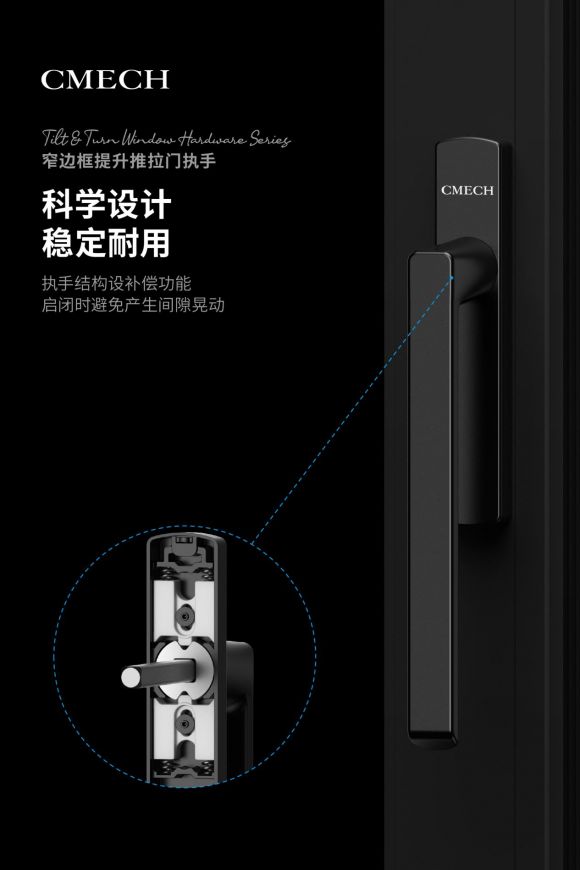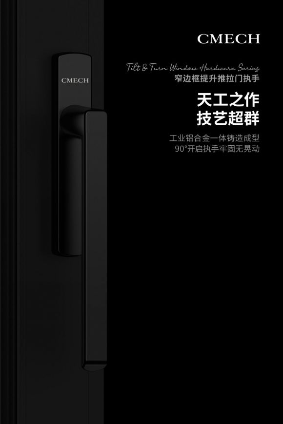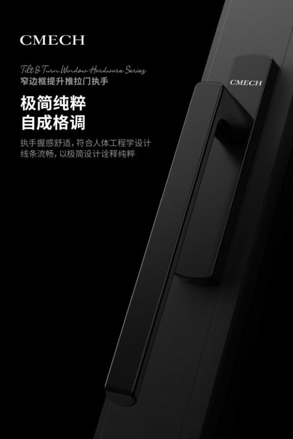 最近,CMECH希美克以高品质的原材料为基础,配合创新外观性能设计以及精简制造工艺,推出了一套美观与功能兼具的窄边框提升推拉门系列执手。