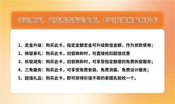活动期间,进店预存指定金额,即可获得换窗特权卡
