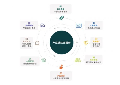 木头云作为一个赋能木材产业上、中、下游企业的综合型服务平台,深耕产业多年,累积了众多专业、优质的客户群,从木材供应商、木材加工厂、木材市场、仓储公司、木材代理商、拼板厂、家具厂到家居定制企业,形成一条完整的供应链。云木智选全屋家居定制服务在这一供应链的加持下,从原材料供应、家具生产、家装设计到现场施工,各个环节可溯、可控,服务品质有保障。